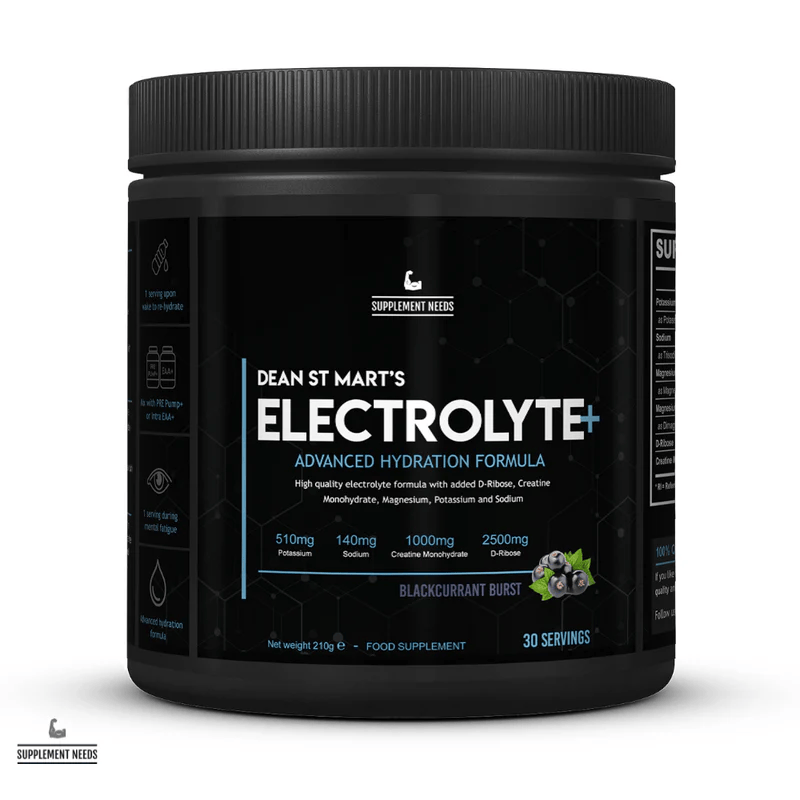 Formulated by Dr Dean St Mart PhD, Electrolyte+ combines 3 of the body’s main electrolytes –510mg Potassium, 140mg Sodium and 45mg Magnesium; alongside 500mg Magnesium Taurate, 2.5g of D-Ribose and 1g Creatine Monohydrate; all in a convenient 7g serving size.